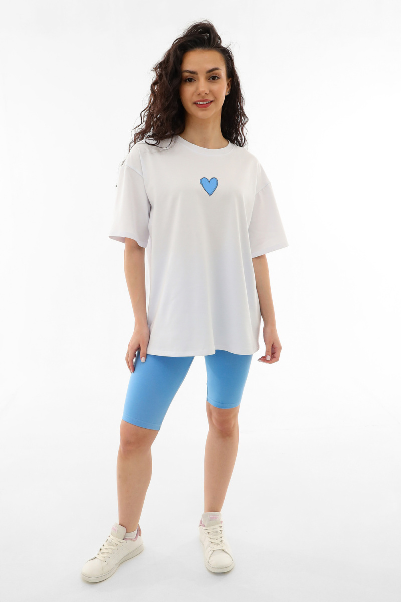 Спортивный костюм женский выполнен в белом цвете с голубыми акцентами, что придает ему неповторимый и свежий вид.